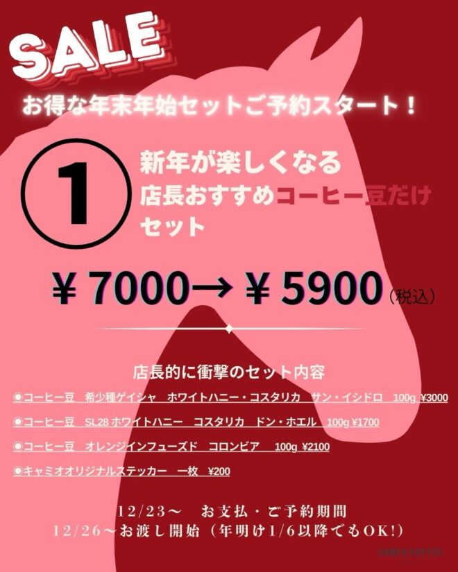 コーヒー豆は年始に販売しますが、こんなに安く出せないので、セットでぜひゲットしてください。