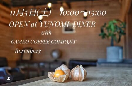 こんばんは!キャミオです。土曜日11/5(土)は、ほおずきドリンクでお世話になっている高萩の結農実WORKSさん @yunomiworks の YUNOMI DINER にてコーヒーを淹れさせていただきます。また、キャミオのホットドックバンズの生まれ故郷、ドイツパン屋さんのローゼンブルグさん @rosenburg_ibaraki さんも、いらっしゃいます!! 私達、3店舗のみが一緒に営業するコラボ営業です。大みか駅前のお店も通常通り営業しておりますので、よかったらどちらも来てくださいね♡ 笑 というのは冗談で、高萩の自然豊かな 結農実さんのオーガニックでワクワクする空間にも是非来ていただきたいです!ゆる〜くお待ちしております。(*´ω`*)日時11/5 (Sat) 10:00-15:00場所オーガニックLife 結農実WORKS @yunomiworks 〒318-0105 茨城県高萩市上君田1030出店ローゼンブルグ @rosenburg_ibaraki さんCAMEO COFFEE COMPANY @cameocoffeecompany […] 2022-11-022022-11-03 投稿者: CAMEO COFFEE COMPANY 続きを読む